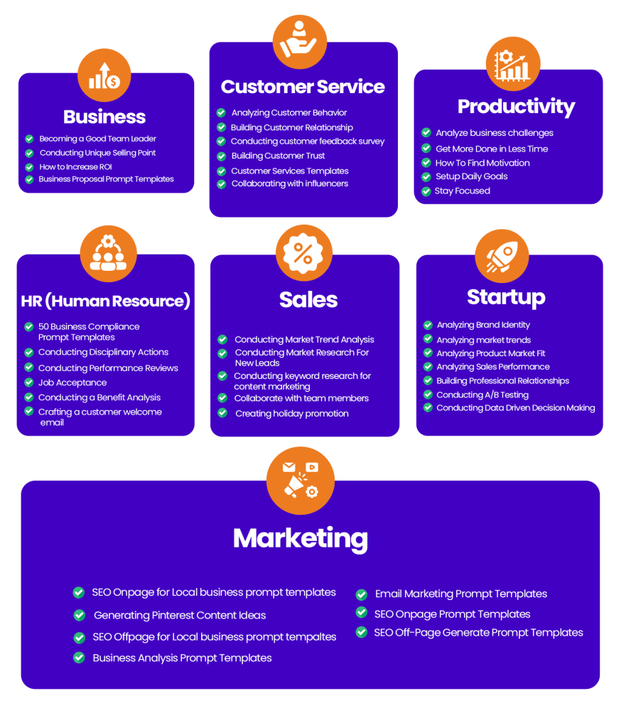 Expand knowledge: Our Package of ChatGPT Prompts cover a wide range of topics, marketing to self-help and new startups to sales and customer service. By investing in this package, you can expand your knowledge and learn about new subjects they may not have explored otherwise.