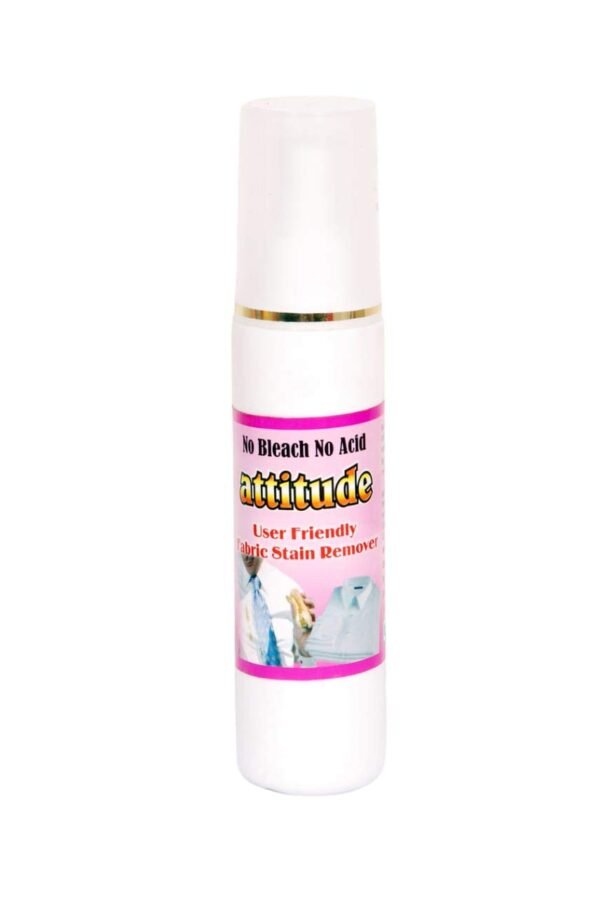 Pratham Pest Control Attitude stain remover- Fabric removes fabric stains. Easy and convenient spray bottle. Spray on stain and wash as usual. 2X strength against stains. With additional strength of nascent oxygen. SEE LESS Features & details Easy and convenient spray bottle Spray on stain – scrub – wash as usual 2X strength against stains With additional strength of nascent oxygen